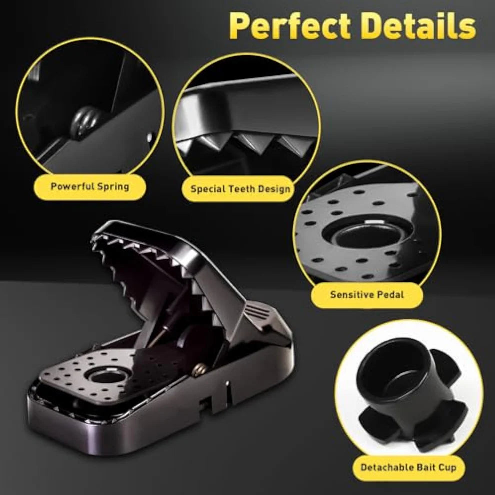 Just add bait, press to set, and place it. No complicated mechanisms, no dangerous snaps near your fingers — the wide-mouth snap design makes trapping effortless.
